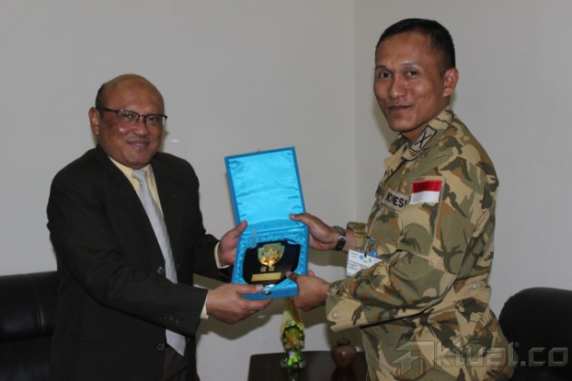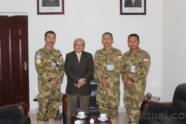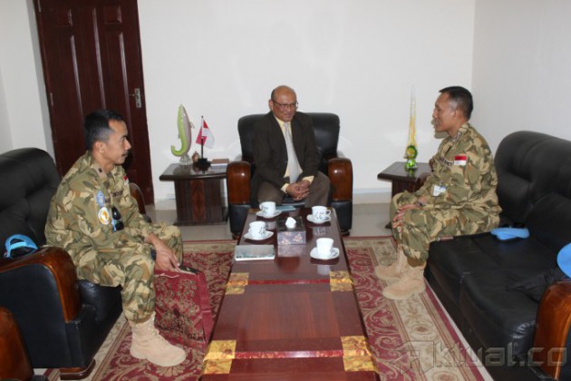 Komandan Satgas (Dansatgas) Batalyon Komposit TNI Kontingen Garuda XXXV-A/Unamid (United Nations Mission In Darfur) atau Indonesian Battalion (Indobatt) Letkol Inf M. Herry Subagyo didampingi dua orang stafnya, menggelar pertemuan dengan Duta Besar (Dubes) Republik Indonesia untuk Sudan, Burhanuddin Badruzzaman, di Khartoum Ibu Kota Sudan, Afrika, Jum’at (22/5/2015). PUSPEN TNI