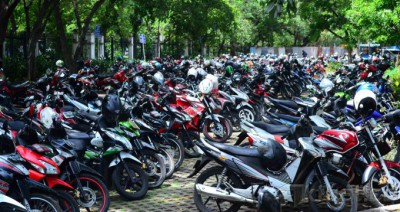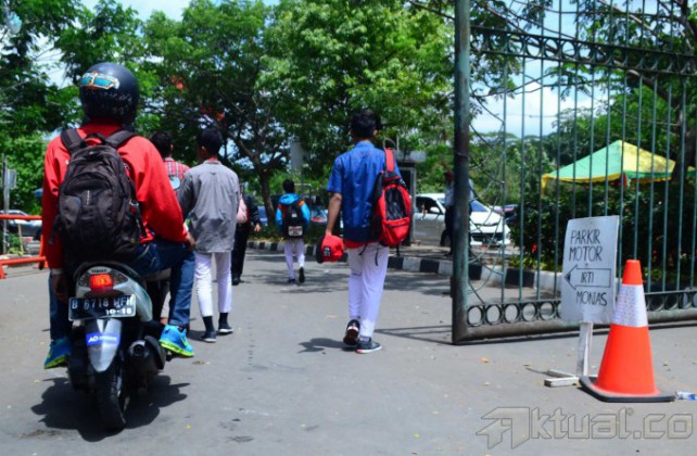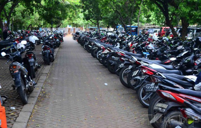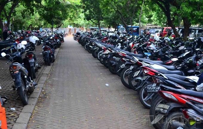 Ribuan sepeda motor parkir di kawasan IRTI, Monas, Jakarta Pusat, Rabu (17/12/2014). Pemberlakuan larangan motor melintas di Bundaran HI hingga Merdeka Barat dilakukan hari ini. Imbasnya, parkir motor di kawasan IRTI Monas membludak sejak pukul 09.00 WIB. Hal ini sebabkan pengguna sepeda motor belum mengetahui gedung mana saja yang bisa digunakan untuk parkiran seperti Carrefour Duta Merlin, Menara BDN, Gedung Jaya, Skyline Building, Sarinah, Gedung BII, Gedung Kosgoro, Plaza Permata, Gedung Oil, Wisma Nusantara, Grand Indonesia. AKTUAL/Erwin Gustianto