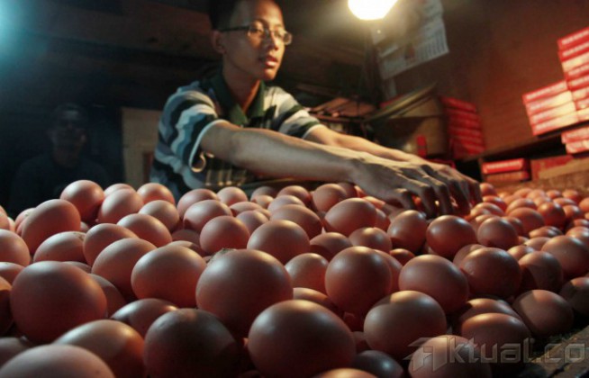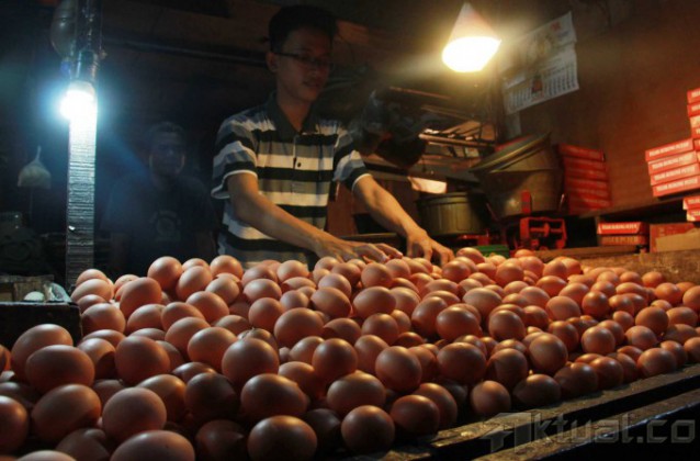 Penjual membereskan telur di pasar Tradisional, Bendungan Hilir, Jakarta Pusat, Rabu (2/7/2014). Baru memasuki bulan Ramadhan selain daging sapi, kenaikan harga juga terjadi pada telur. Harga telor ayam ras dan itik merangkak naik saat ini Rp 33.500, sebelumnya hanya Rp 29.500. sedangkan telur itik mengalami kenaikan dari harga Rp 2.500 per butirnya, sekarang Rp 3.000 per butir dan telor ayam kampung yang biasanya Rp 2.000 per butir sekarang Rp 3.000 per butir. Aktual/Tino Oktaviano