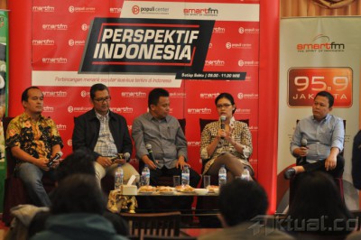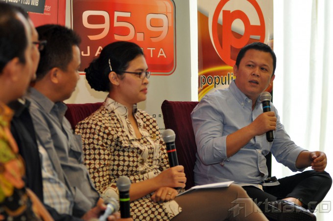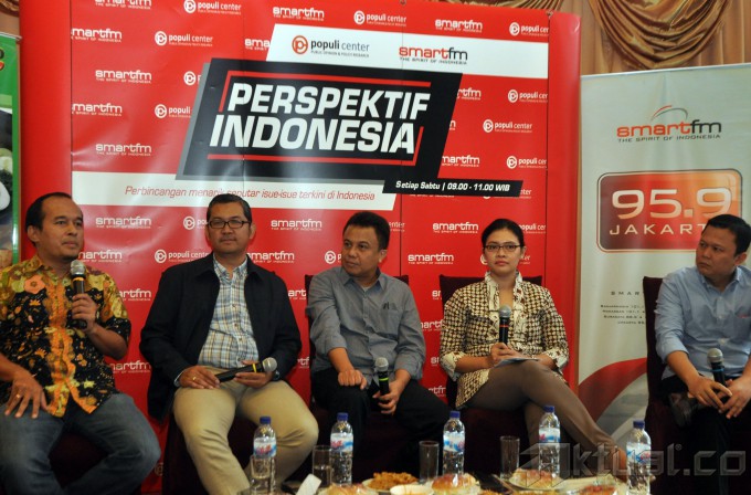 Dari kiri ke kanan, Peneliti Populi Center Nico Harjanto, Ketua Jurusan Ilmu Internasional Universitas Binus Tirta Mursitama, Host Ichan Loulembah, Koordinator Koin untuk Australia Andi Haryanto Simulingga, Director Paramadina Graduate School of Diplomacy Dinna Wisnu, menjadi pembicara diskusi “Diplomasi dan Hukuman Mati” mengenai ketegangan diplomatik yang siap dihadapi Indoensia akibat hukuman mati di Jakarta, Sabtu (7/3/2015). DKeputusan pemerintah RI untuk tetap melaksanakan eksekusi mati untuk para pengedar narkotika membuat hubungan internasional dengan beberapa negara mencapai titik didih. Sebab, sejumlah terpidana mati tercatat sebagai warga asing dari sejumlah negara seperti Australia, Belanda dan Brazil. AKTUAL/JUNAIDI MAHBUB