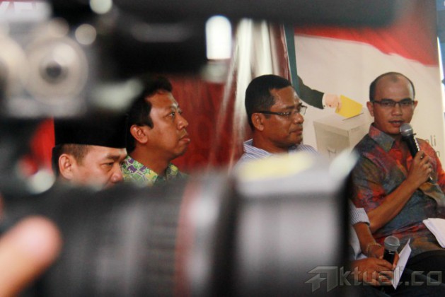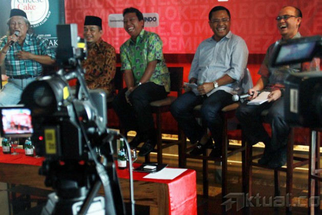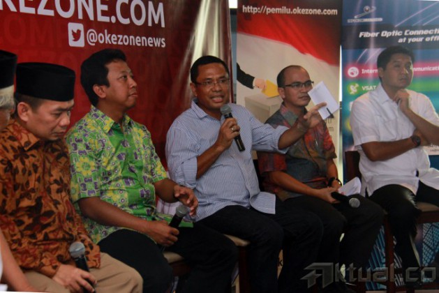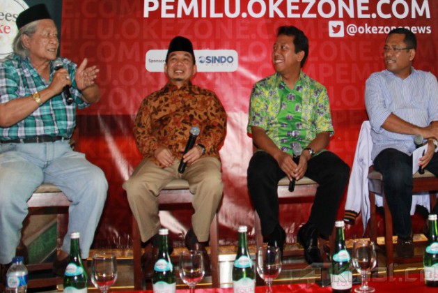 Dari kiri ke kanan, Budayawan Ridwan Saidi, Ketua DPP PKS Jazuli Juwaini, Sekjen PPP Romahurmuziy, Ketua DPP Hanura Saleh Husin, Pengamat Politik Universitas Mercu Buana Heri Budianto dan Ketua DPP PDIP Maruarar Sirait, saat menjadi pembicara dalam diskusi bertajuk “Nasib Parpol Nasionalis & Parpol Agamis di Pemilu 2014” Cikini, Jakarta, Sabtu (30/11). Koalisi partai Islam bisa meraih 25 persen suara pada Pemilu 2014. Lima partai tersebut adalah Partai Keadilan Sosial, Partai Amanat Nasional (PAN), Partai Bulan Bintang (PBB), Partai Kebangkitan Bangsa (PKB), dan Partai Persatuan Pembangunan (PPP). Aktual/Tino Oktaviano