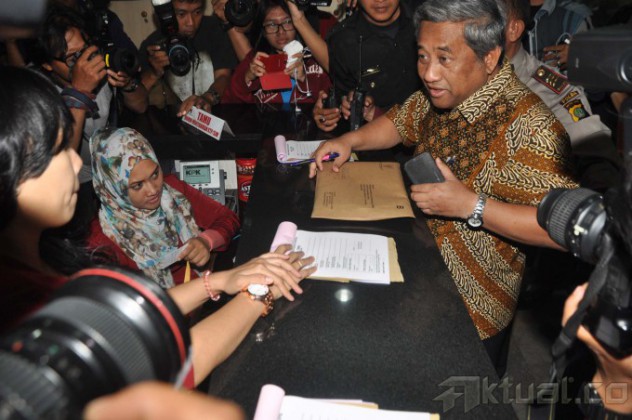 Mantan Menteri Pendidikan dan Kebudayaan, Mohammad Nuh menyapa awak media saat tiba di Gedung Komisi Pemberantasan Korupsi (KPK), Jakarta, Selasa (9/12/2014). M Nuh hadir ke KPK untuk melaporkan harta kekayaan sebagai penyelenggara Negara (LHKPN) setelah menjabat jadi menteri. AKTUAL/JUNAIDI MAHBUB