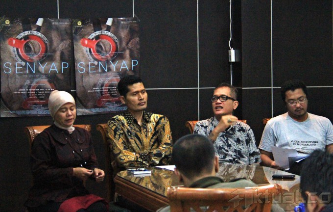 Dari kiri ke kanan, Anggota Komnas HAM Roichatul, Anggota Komnas HAM M. Nurkhoiron, Anggota Dewan kesenian Jakarta Irawan Karsena, Anggota Dewan Kesenian Jakarta Alex Sihar, saat konferensi pers seputar kontrofersi film “Senyap” di kantor Komnas HAM, jalan Latuharhary, Menteng, Jakarta Pusat, Senin (5/1/2015). Komnas HAM mengecam penghentian paksa pemutaran film Senyap (The Look of Silence) di sejumlah tempat oleh Lembaga Sensor Indonesia, padahal penayangan film ini merupakan bagian dari Peringatan Hari HAM Internasional dan sudah dicanangkan dalam sebuah gerakan nasional. AKTUAL/MUNZIR