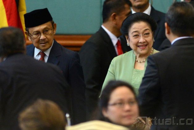Presiden RI ke-3 Indonesia BJ Habibie (kiri) dan Presiden RI ke-5 Megawati Soekarnoputri menghadiri acara pembukaan Konferensi Tingkat Tinggi (KTT) Asia Afrika 2015 yang dibuka Presiden Joko Widodo di Jakarta Convention Center (JCC), Rabu (22/4). Sebanyak 32 kepala negara dan delegasi dari 92 negara hadir dalam rangkaian peringatan 60 Tahun KTT Asia Afrika yang dilaksanakan di Jakarta dan Bandung sejak 19 April hingga 24 April 2015. aacc2015/Panca Syurkani