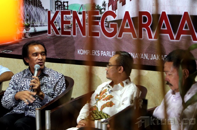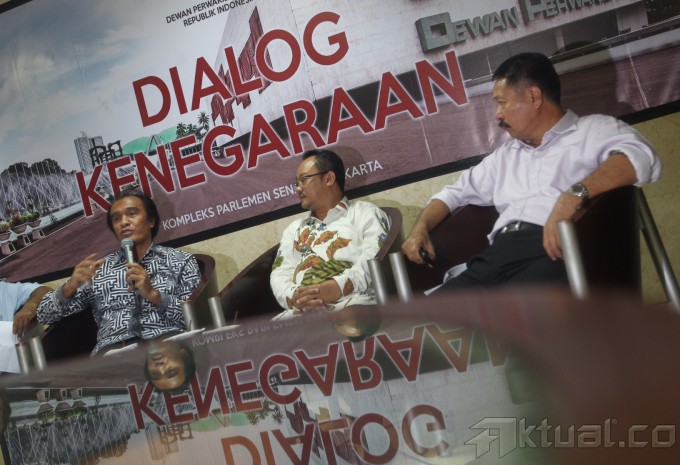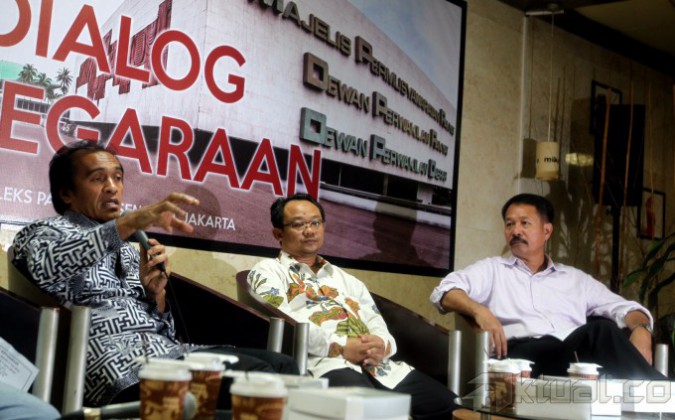 Wakil Ketua DPD La Ode Ida (kiri) bersama Tokoh Muhammadiya yamh juga Akademisi UIN Syarif Hidayatullah Abdul Mu’ti (tengah) dan Caleg terpilih Partai NasDem Muchtar Luthfi Andi Mutty (kanan) menjadi pembicara dalam diskusi Dialog Kenegaraan, di Gedung Parlemen, Jakarta, Rabu (7/5/2014). Mereka berbicara mengenai kemungkinan-kemungkinan yang terjadi seputar pelaksanaan Pilpres 9Juli 2014 mendatang dengan berefleksi pada Pemilu Legislatif 9 April 2014 lalu, yang dinilai banyak kalangan sangat buruk dan diwarbai kecurangan. Aktual/Tino Oktaviano