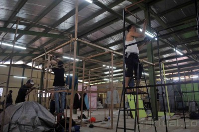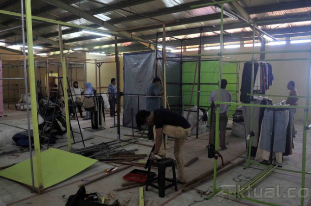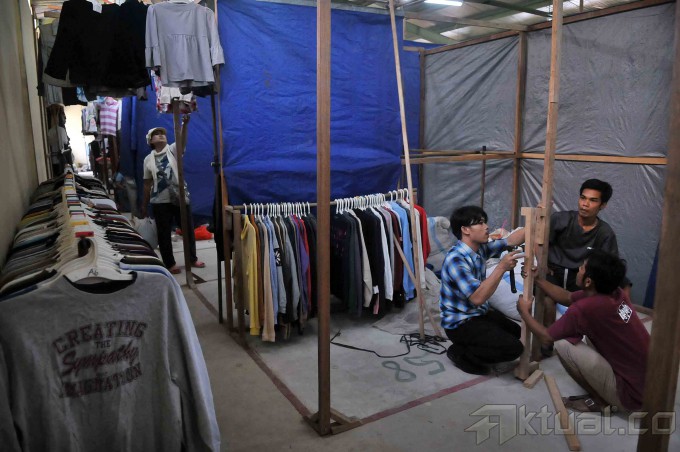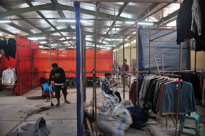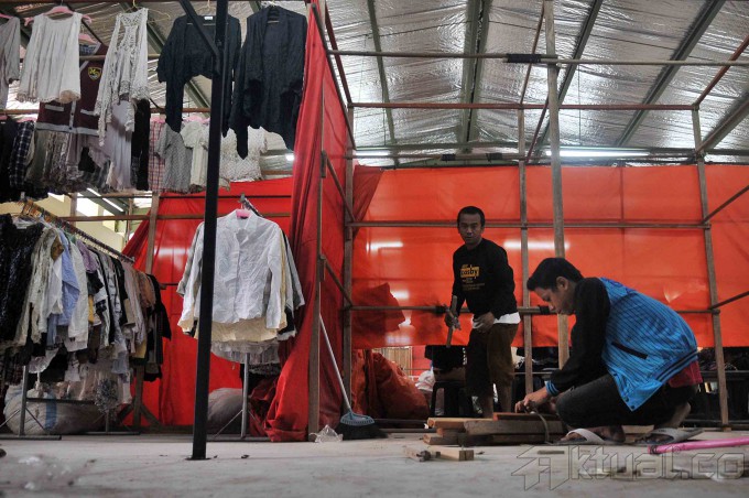 Sejumlah pedagang membenahi kiosnya di tempat penampungan sementara (TPS) pasar Senen, Jakarta, Minggu (6/2/2015).Setelah kebakaran melandaPasar Senen Blok III tahun lalu. Pedagang di pindahkan ke beberapatempat penampungan darurat sementara yang berjumlah 762 kios. AKTUAL/TINO OKTAVIANO