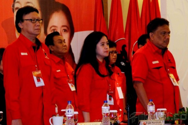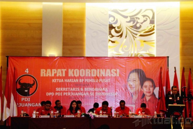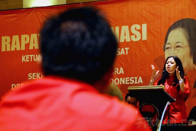 Ketua DPP PDI Perjuangan bidang politik Puan Maharani saat memberikan sambutan dalam Rapat Koordinasi Nasional (Rakornas) Badan Pemenangan Pemilu (Bappilu) di Hotel JS Luwansa, Jalan Rasuna Sahid, Jakarta, Rabu (16/10). Dalam pidatonya Puan memberikan semangat kepada caleg menjelang pemilu caleg yang akan diadakan 9 April 2014. Aktual/Oke Dwi Atmaja