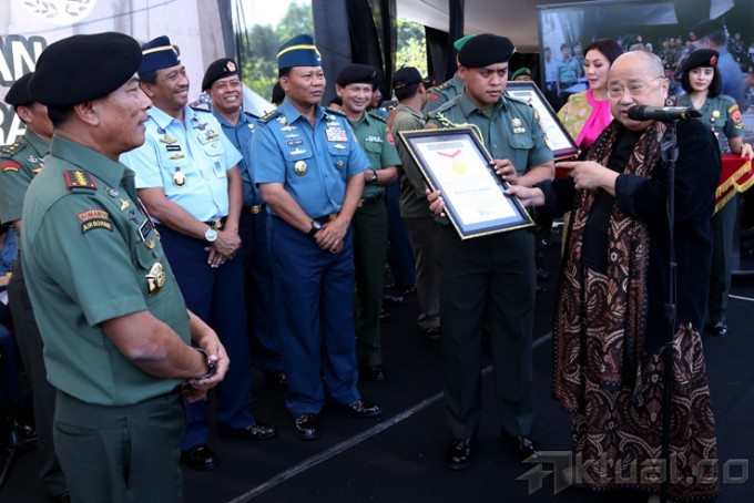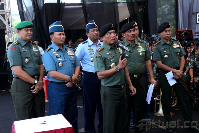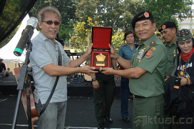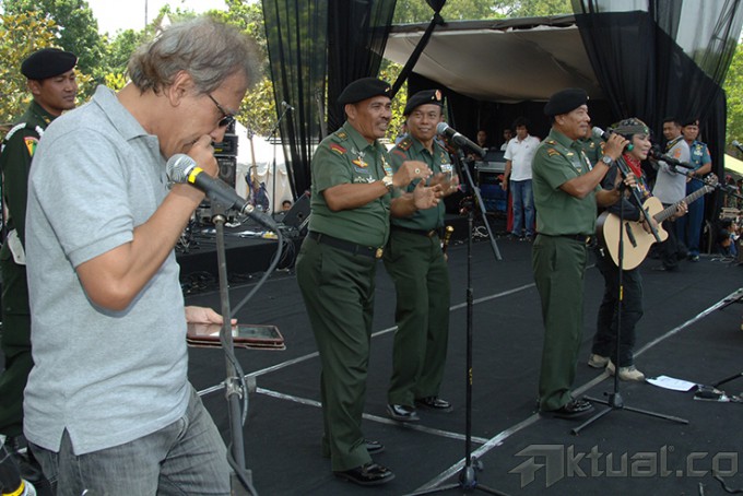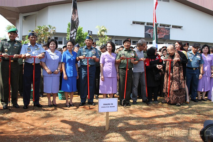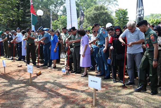Panglima TNI Jenderal TNI Moeldoko (empat kiri) saat mengajak musisi Iwan Fals (tengah) dan Pendiri Museum Rekor Indonesia Jaya Suprana (empat kanan) untuk membuat Lubang Resapan Biopori (LRB) di Mabes TNI, Cilangkap, Jakarta, Rabu (24/9/2014). Kegiatan ini dilakukan dalam rangka pencanangan gerakan TNI “Pembuatan Berjuta-juta LRB”. AKTUAL/PUSPEN TNI