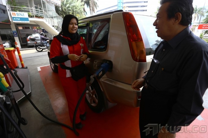 Petugas tengah mengisikan bahan bakar minyak (BBM) jenis Pertamax di SPBU Kuningan, Jakarta Selatan, Rabu (11/9/2013). BBM non subsidi itu naik dari Rp 9.500 menjadi Rp 9.950 per liter. Kenaikan harga jual eceran Pertamax dikarenakan peningkatan harga minyak dunia. Aktual/Tino Oktaviano