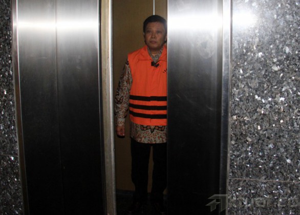 Terdakwa Direktur Utama PT Dutasari Citralaras Machfud Suroso keluar usai menajalani vonis di pengadilan Tindak Pidana Korupsi (Tipikor), Jakarta, Rabu (1/4/2015). Majelis hakim menjatuhkan vonis enam tahun penjara dan denda Rp 200 juta subsider tiga bulan kurungan kepada Machfud Suroso karena terbukti bersalah dalam kasus dugaan korupsi pembangunan proyek Pusat Pendidikan, Pelatihan, dan Sekolah Olahraga Nasional (P3SON) di Bukit Hambalang. AKTUAL/MUNZIR