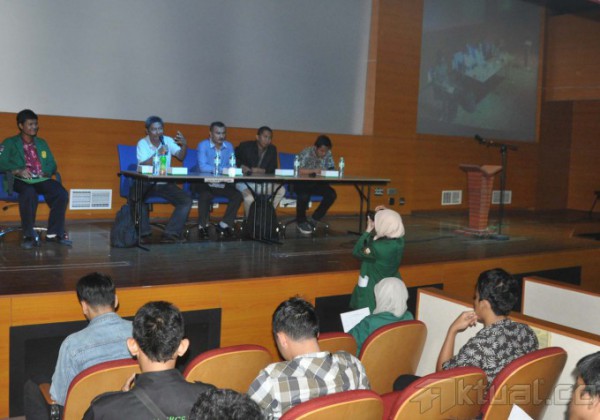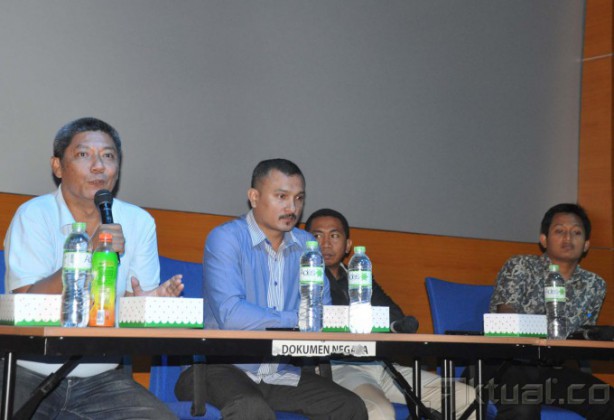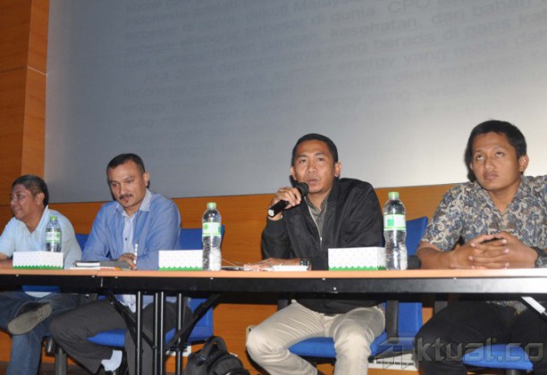 Pengamat Migas dan Geopolitik Ekonomi Global Future Institute, Hendrajit, Direktur Eksekutif Energi Watch Indonesia, Ferdinan Hutahaean, Direktur The Instituate for Global Justice, Salamuddin Daeng saat menjadi narasumber dalam acara diskusi di Universitas Negeri Jakarta, Kamis (2/10/2014). Diskusi tersebut bertema “Quo Vadis Kedaulatan Energi Indonesia di bawah Kepemimpinan Baru”. AKTUAL/JUNAIDI MAHBUB