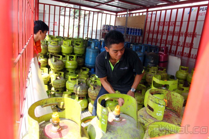 Pekerja menurunkan tabung gas Elpiji 3 Kg, di Stasiun Pengisian Bahan Bakar Umum (SPBU), Cikini, Jakarta Pusat, Rabu (7/1/2015). Penetapan harga bahan bakar minyak dan elpiji berukuran 12 kilogram yang diterapkan pemerintah Joko Widodo lebih mahal dibandingkan harga yang beredar di pasaran. Indonesia Corruption Watch menilai, mahalnya harga BBM dan elpiji nonsubsidi berpotensi menimbulkan penyimpangan Rp 2,479 triliun. Kenaikan harga gas 3 kg dengan harga jual antara Rp17.000-Rp18.000 per tabung, merupakan imbas kenaikan elpiji (Liquid Petroleum Gas) ukuran 12 kg. Selain itu, masa liburan perayaan natal dan tahun baru disertai curah hujan tinggi berimbas pada peningkatan konsumsi gas melon (3 kg). AKTUAL/JUNAIDI MAHBUB