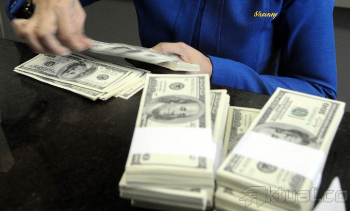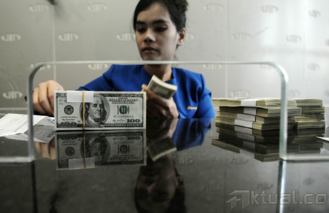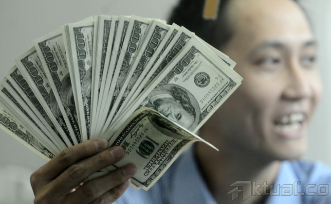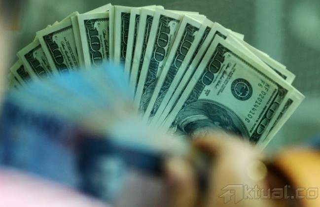 Seorang Karyawan memperlihatkan uang dolar di kantor penukaran uang di kawasan Jakarta Pusat, Jumat (28/2/2014). Nilai tukar dolar AS diperdagangkan di level Rp 11.635. Nilai tukar rupiah yang ditransaksikan antarbank di Jakarta bergerak menguat sebesar 88 poin menjadi Rp 11.578 dibanding sebelumnya Rp 11.666 per dolar AS. Aktual/Tino Oktaviano