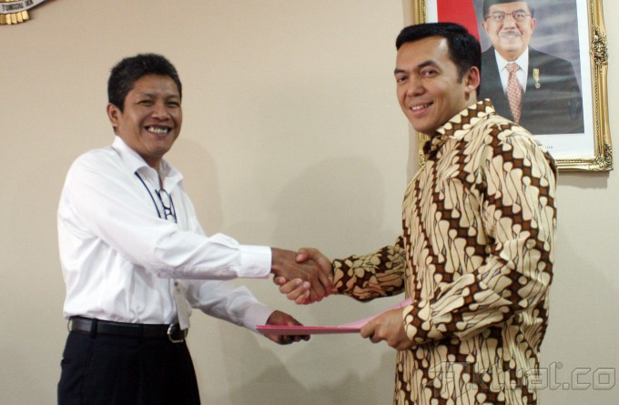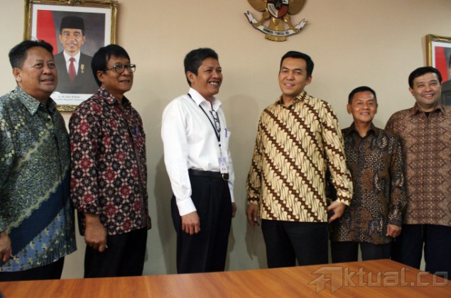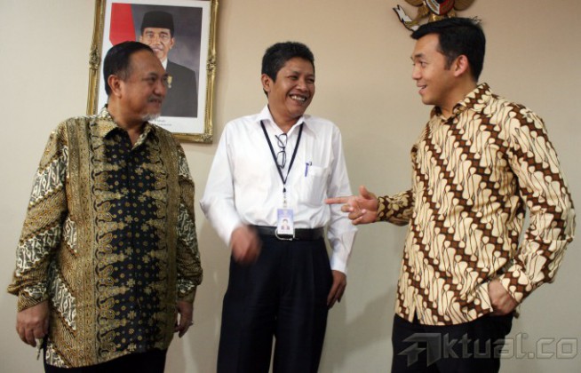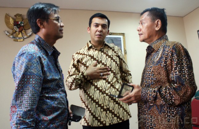 Deputi Bidang Usaha Industri Primer dan Industri Strategis Kementrian Badan Usaha Milik Negara (BUMN) Muhammad Zamkhani (tengah), berbincang dengan Direktur Utama (Dirut) PT Pindad (persero) Silmy Karim (kanan) dan Wakil Komisaris PT Pindad Ali Yusuf Susanto (kiri) usai pelantikan dirut di kantor kementerian BUMN, Jakarta, Senin (22/12/2014). Kementerian Badan Usaha Milik Negara (BUMN) mengangkat Silmy Karim jadi dirut PT Pindad (Persero) menggantikan Sudirman Said yang sudah jadi Menteri Energi Sumber Daya Mineral (ESDM). Silmy Karim akan mendukung kebijakan pemerintah yang ingin membangun kemandirian industri pertahanan dari karya putra putri terbaiknya di Pindad. AKTUAL/TINO OKTAVIANO
