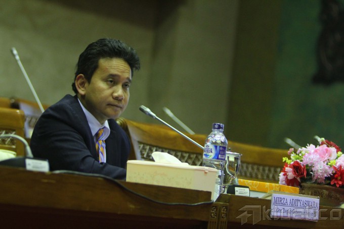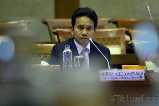 Deputi Gubernur Senior Bank Indonesia Mirza Adityaswara, menjalani uji kelayakan dan kepatutan (fit and proper test) di Komisi XI DPR, Gedung Parlemen, Jakarta, Senin (9/6/2014). Mirza Adityaswara menjalani uji kelayakan dan kepatutan untuk memperpanjang masa jabatannya hingga 2019. Aktual/Tino Oktaviano
