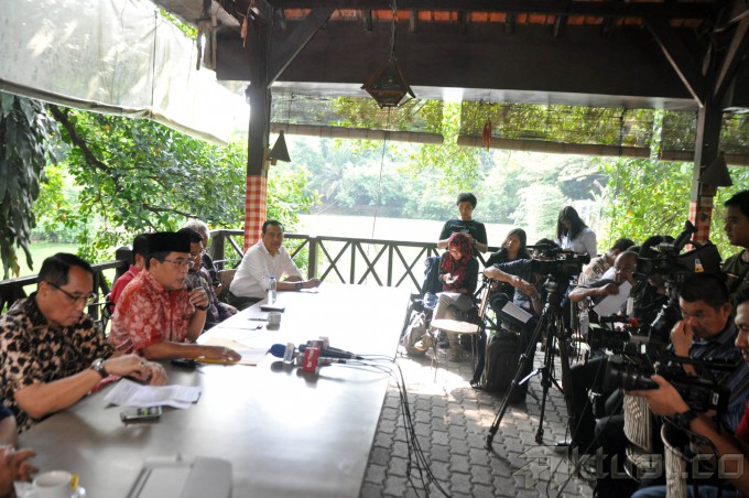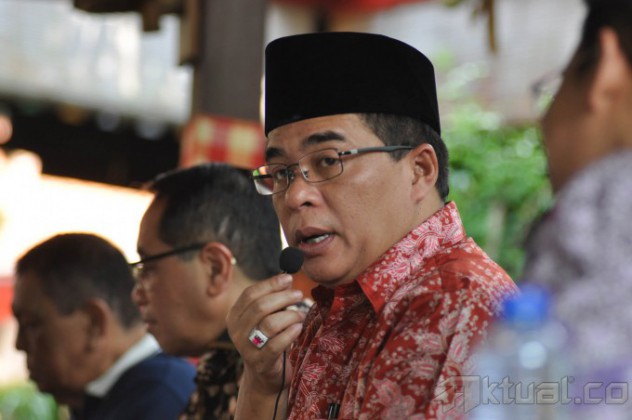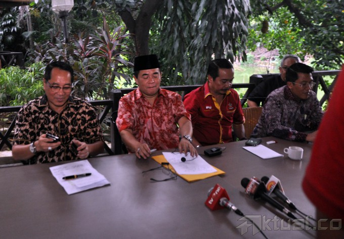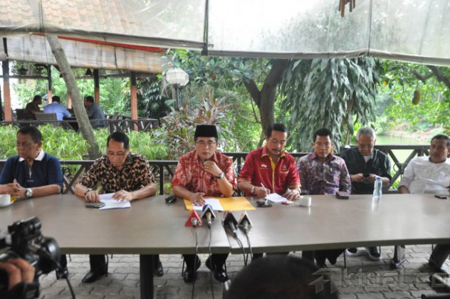 Ketua Umum Sentra Organisasi Swadiri Indonesia (SOKSI) yang juga Ketua Fraksi Golkar, Ade Komarudin memberikan keterangan kepada sejumlah awak media di Resto Pulau Dua, Senayan, Jakarta, Jumat (15/5/2015). SOKSI akan mengelar Rapim III dan Munas X di Celegon, Banten, 19-22 mei 2015. Agenda tersebut akan membahas pemasalahan ekonomi Indonesia yang sedang merosot. AKTUAL/JUNAIDI MAHBUB