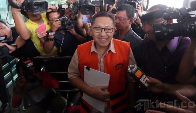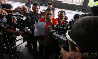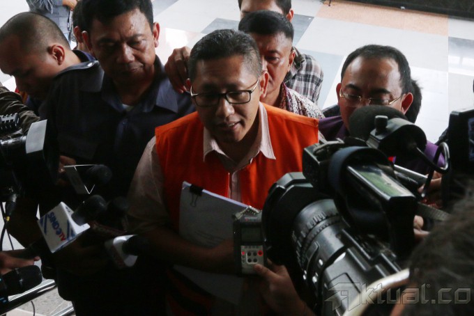 Tersangka kasus dugaan korupsi proyek Hambalang Anas Urbaningrum mengaku, mengetahui kasus Videotron yang melibatkan anak Menteri Koperasi dan UKM, Syarif Hasan sebelum diperiksa Komisi Pemberantasan Korupsi (KPK), Jakarta, Jumat (28/3/2014). Tersangka kasus korupsi Videotron di Kementerian Koperasi dan UKM, Hendra Saputra ternyata bekerja sebagai office boy di PT Rifuel yang sejatinya merupakan perusahaan milik anak Menteri Syarief Hasan, Rievan Arvan Saputra. Aktual/Tino Oktaviano