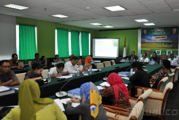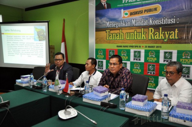 Wakil Ketua Komisi II DPR RI, Lukman Edy (kiri) bersama Ketua Fraksi Partai Kebangkitan Bangsa (PKB), Helmy Faishal Zaini (kedua kanan) saat berbicara pada acara diskusi diskusi yang mengangkat tema “Tanah untuk Rakyat” di Ruang Fraksi PKB, DPR RI, Senayan, Jakarta, Rabu (25/3/2015). PKB menilai sudah saatnya lahir UU Pertanahan. Komisi II juga sudah memulai pembicaraan kembali tentang RUU Pertanahan dan berencana menyelesaikannya dalam tahun 2015 ini, karena sudah masuk dalam prolegnas 2015. AKTUAL/JUNAIDI MAHBUB