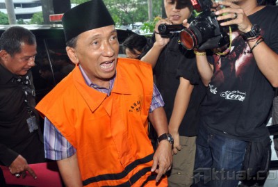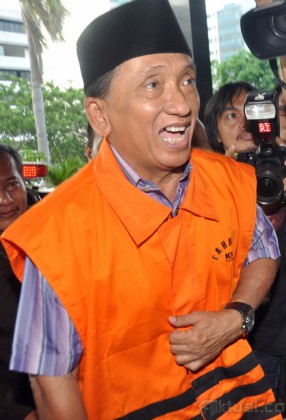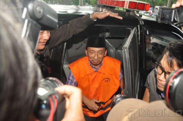 Mantan Bupati Bangkalan Fuad Amin saat turun dari mobil tahanan setibanya di Gedung Komisi Pemberantsan Korupsi (KPK), Jakarta, Rabu (10/12/2014). Fuad Amin kembali menjalani pemeriksaan sebagai tersangka kasus suap jual beli gas untuk kepentingan pembangkit listrik. Saat ditanya soal pembangkit listrik yang diduga fiktif, Fuad enggan berkomentar. AKTUAL/JUNAIDI MAHBUB