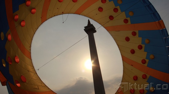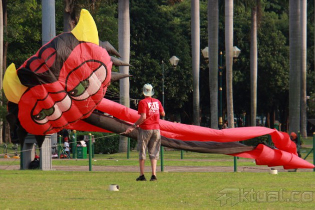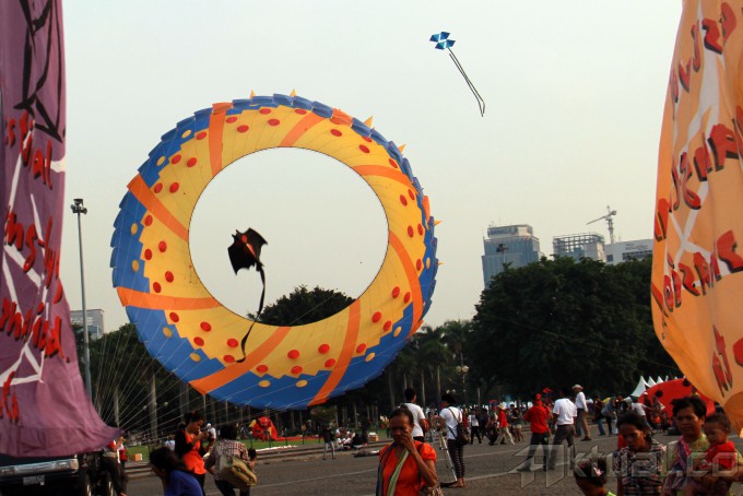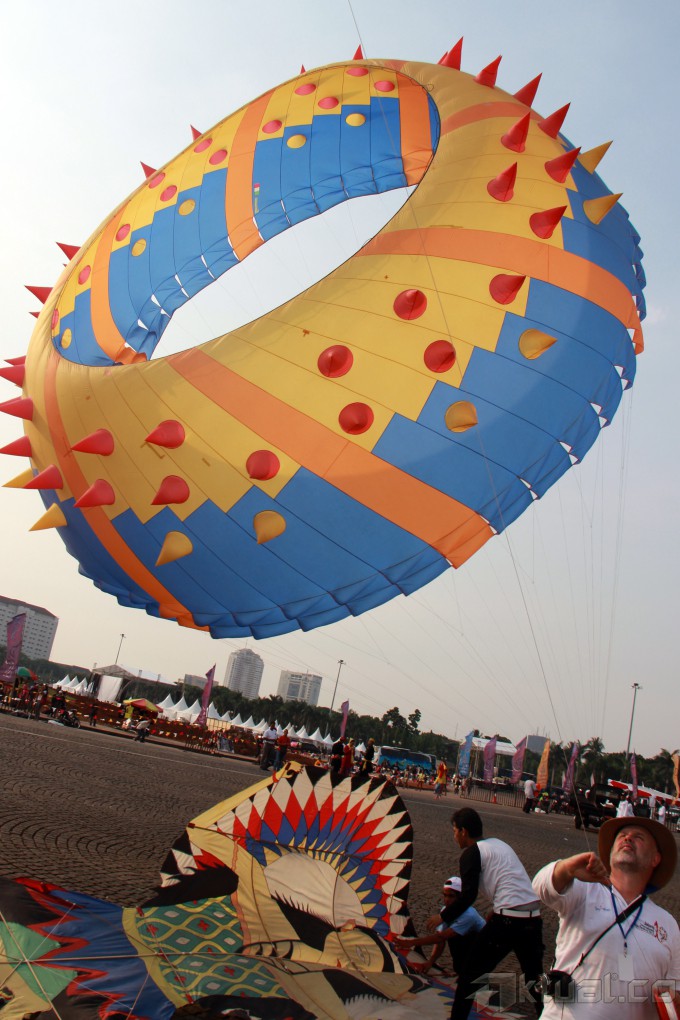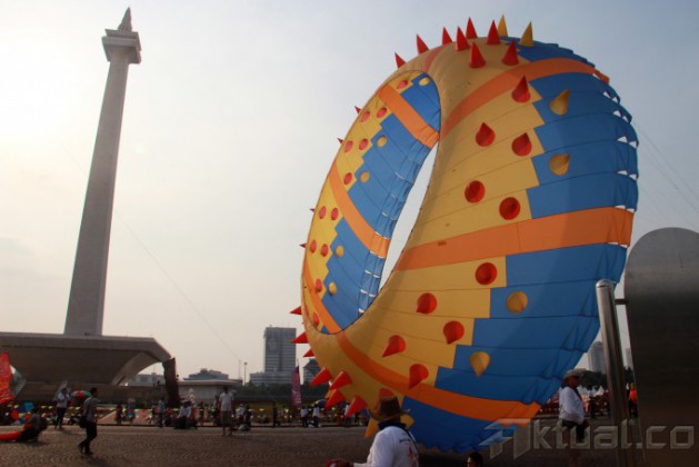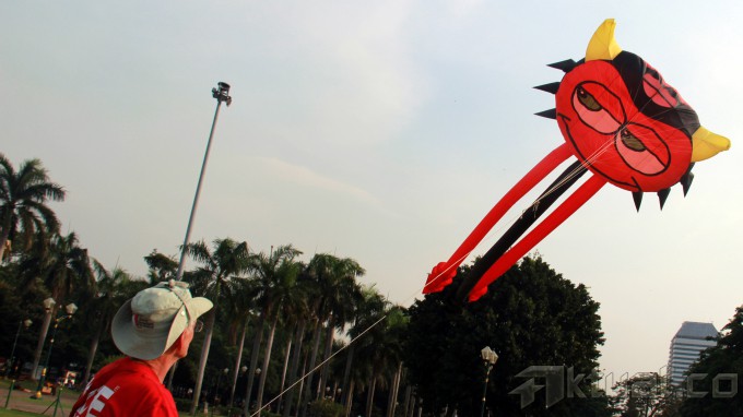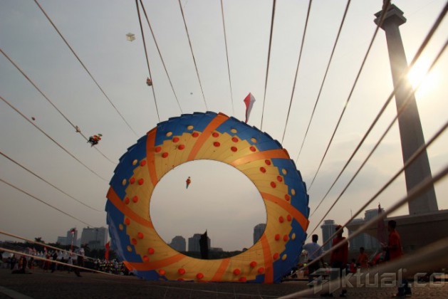 Seorang peserta menerbangkan layang-layang saat mengikuti acara Jakarta International Kite Festival XIX di Lapangan sektor timur, Monas, Jakarta, Sabtu (30/11/2013). Jakarta Festival Layang-layang bertaraf internasional ke 19 kembali hadir tahun ini. Dengan bertemakan “Jakarta Baru Jakarta Kita” Acara ini menghadirkan 150 pelayang berasal dari 15 provinsi di Indonesia dan 18 negara. Selain itu pengunjung dapat mengikuti workshop pembuatan layangan dari kertas dan plastic bekas. Aktual/Tino Oktaviano