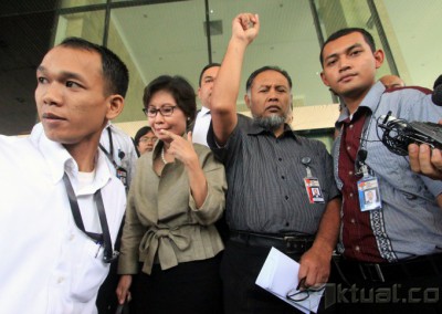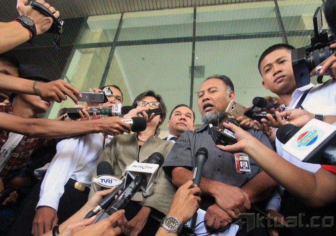Wakil Ketua Komisi Pemberantasan Korupsi (KPK) non aktif Bambang Widjojanto saat keluar dari gedung KPK, Jalan HR Rasuna Said, Jakarta Selatan, Selasa (24/2/2015). Bambang akan diperiksa penyidik Bareskrim Mabes Polri yang ke tiga. Bambang yang terlibat dalam kasus saksi palsu dalam sidang Pilkada Kotawaringin Barat Kalimantan Tengah. AKTUAL/MUNZIR