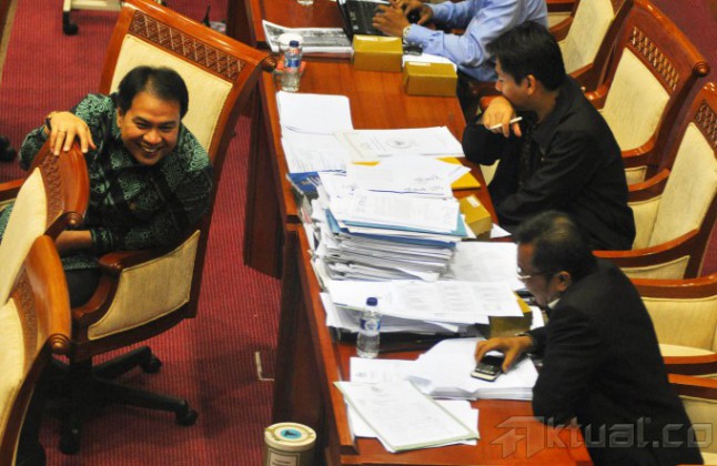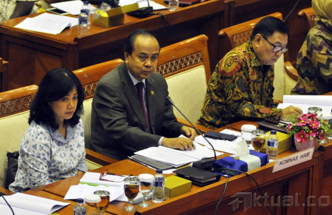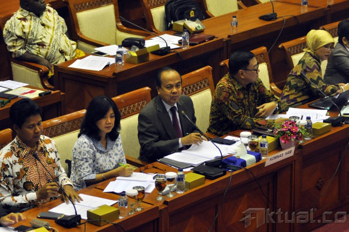 Ketua Komnas HAM Hafidz Abbas (tengah) mengikuti rapat dengar pendapat dengan Komisi III DPR di Kompleks Parlemen, Jakarta, Rabu (4/2/2015). Rapat tersebut diantaranya membahas dugaan pelanggaran HAM dalam proses penangkapan Wakil Ketua KPK Bambang Widjojanto oleh Polri. AKTUAL/JUNAIDI MAHBUB