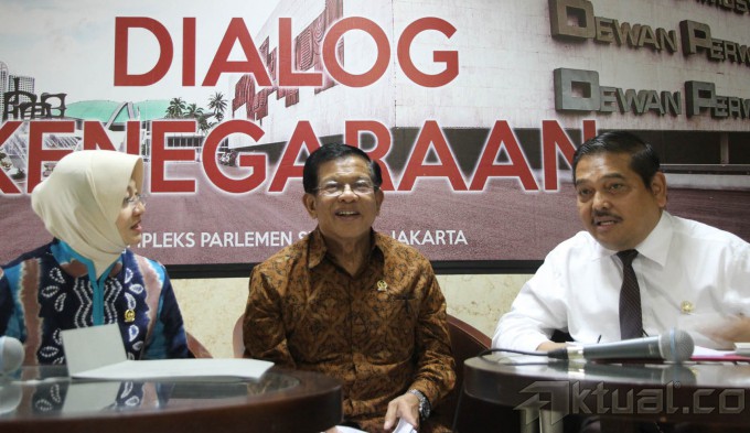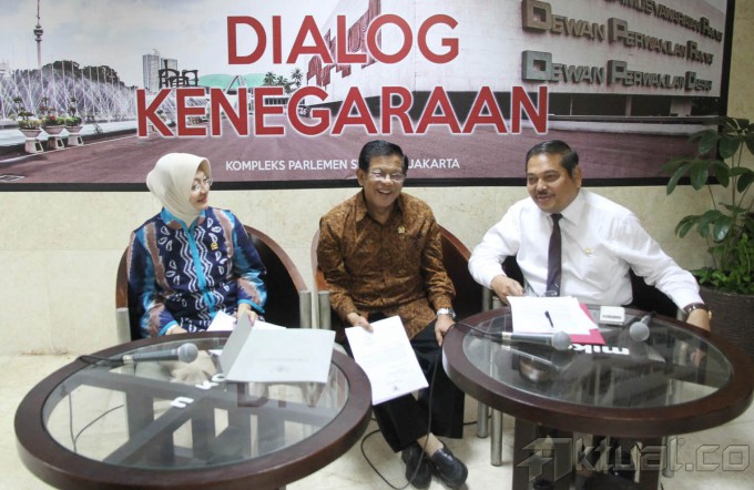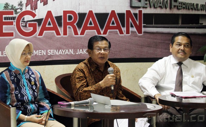 Dari kiri ke kanan, Anggota DPD Nurmawati Dewi Bantilan, AM Fatwa dan Parlindungan Purba, saat diskusi memberikan keterangan pers, Jakarta, Selasa (3/2/2015). Dalam keterangannya anggota DPD akan mengajukan hak bertanya anggota DPD kepada presiden terhadap penentuan harga BBM. AKTUAL/JUNAIDI MAHBUB