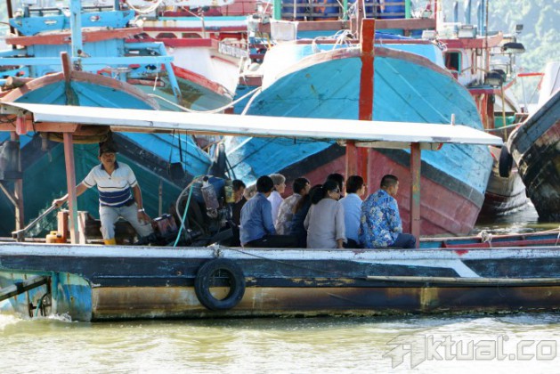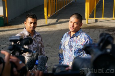Michael Chan (kanan), kakak dari terpidana mati Andrew Chan, bersama Chintu Sukumaran (kiri), adik dari terpidana mati Myuran Sukumaran, memberi keterangan kepada wartawan, di dermaga penyeberangan Wijayapura, Cilacap, Jateng, Senin (9/3). Keluarga terpidana mati Andrew Chan dan Myuran Sukumaran, dua terpidana mati asal Australia, melakukan kunjungan pertama setelah mereka di pindahkan dari Lapas Krobokan Bali, ke Lapas Besi Nusakambangan. ANTARA FOTO/Idhad Zakaria