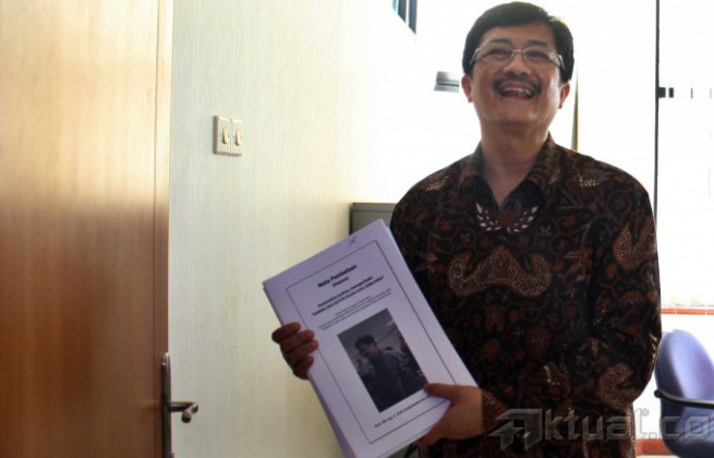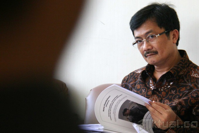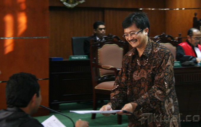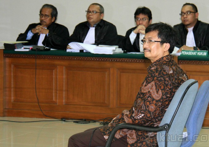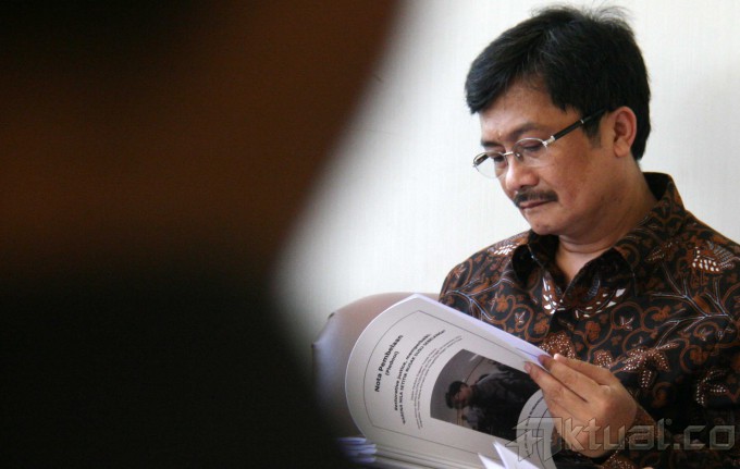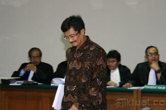 Terdakswa kasus suap SKK Migas Rudi Rubiandini membaca nota pembelaan sebelum sidang di pengadilan Tindak Pidana Korupsi (Tipikor), Jalan HR Rasuna Said, Jakarta, Selasa (15/4/2014). Pledoi Rudi setebal 26 halaman yang berjudul “Resrorative Justice, memperbaiki: Karena Nila Setitik Rusak Susu Sebelanga”, Dalam pledoinya Rudi juga akan menyinggung soal prestasinya sejak menjabat Dosen di ITB hingga Kepala SKK Migas. Pada salinan pledoi menjelaskan kronologi perkara yang menjeratnya. Termasuk mengenai adanya transaksi-transaksi yang dilakukan Deviardi, pelatih golf yang juga dijerat dalam perkara yang sama. Aktual/Tino Oktaviano
