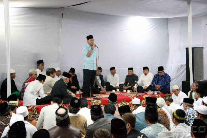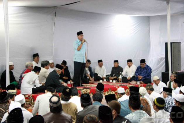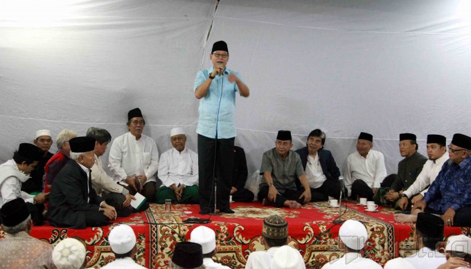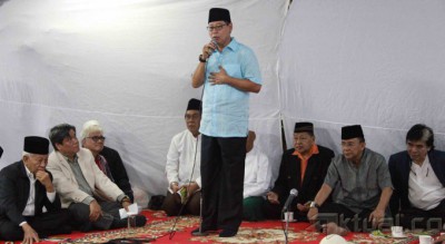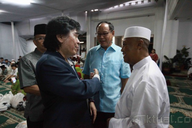 Menteri Perumahan Rakyat Djan Faridz (tengah), Adik mendiang Taufik Kiemas, Santayana Kiemas dan Wakil Ketua Majelis Syariah PPP KH Nur Iskandar SQ (kanan) berbincang disela-sela acara peringatan hari lahir (harlah) Taufiq Kiemas di Kediaman Jalan Teuku Umar, Menteng, Jakarta Pusat, Selasa (31/12/2013). Almarhum Taufik Kiemas dikenal sebagai salah seorang tokoh yang selalu memperjuangkan empat pilar kebangsaan. Aktual/Tino Oktaviano