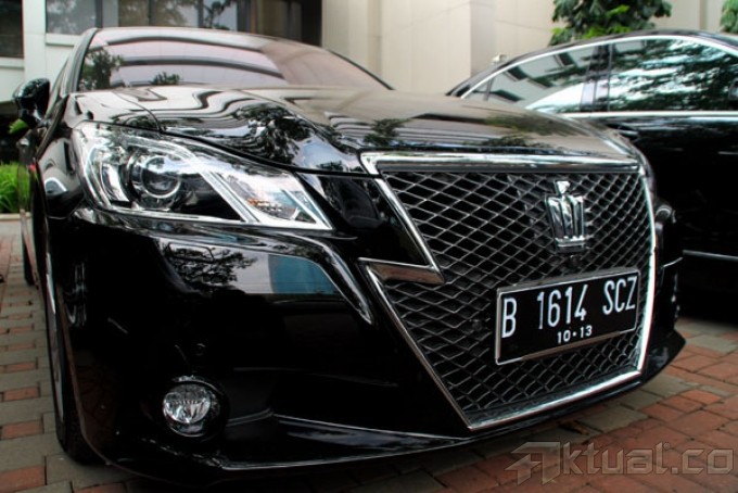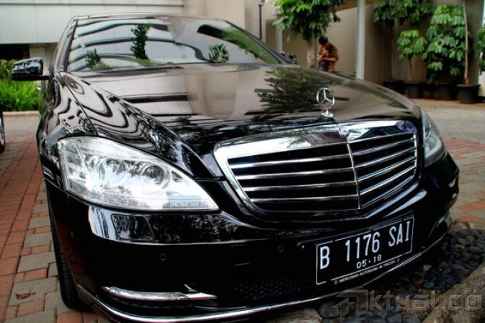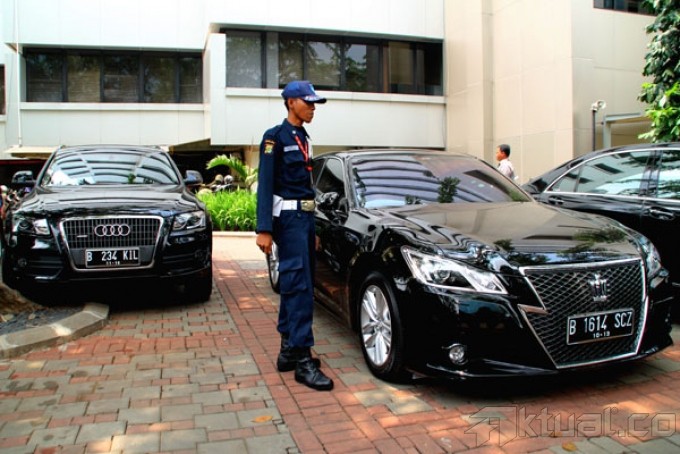 Petugas melihat mobil-mobil mewah hasil sitaan KPK dari rumah Akil Mochtar di Komplek Liga Mas, Pancoran Jakarta Selatan yang diparkir di gedung KPK di Jakarta, Rabu (9/10/2013). Tiga mobil mewah itu adalah Audi Q5, Crown Athlete dan satu Mercedes Benz S 350 diatas namakan sopir Akil bernama Daryono. Aktual/Oke Dwi Atmaja