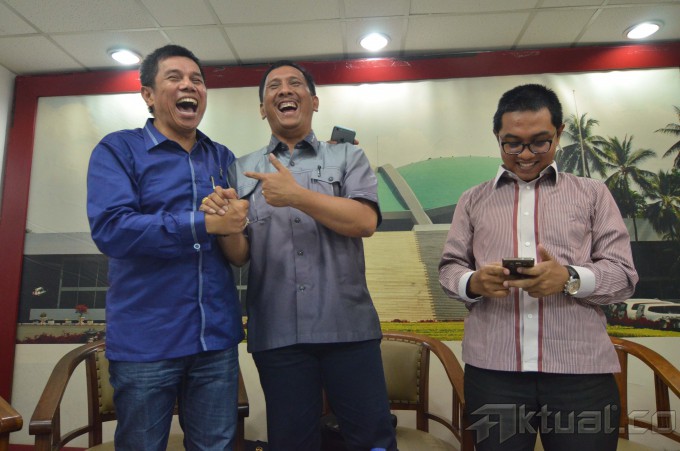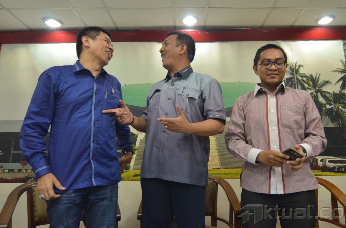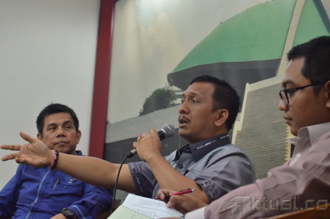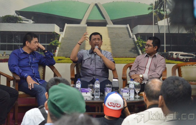 Anggota DPD RI Gede Pasek Suardika (tengah) bersama ketua DPP Partai Demokrat Hinca Panjaitan (kiri) dan Peneliti CSIS Arya Fernandes menjadi pembicara pada dialektika demokrasi yang bertema “Dinamika Politik Parlemen Jelang Kongres Demokrat” di Pressroom DPR, Kompleks Parlemen Senayan, Jakarta Selatan, Kamis (7/5/2015). Meski tak diundang, Gede Pasek Suardika memastikan akan tetap berangkat ke Surabaya untuk mengikuti kongres Partai Demokrat pada 11-13 Mei 2015. AKTUAL/JUNAIDI MAHBUB