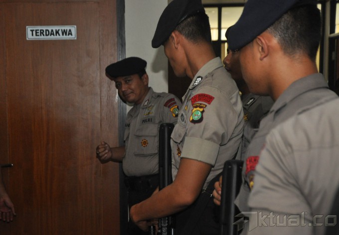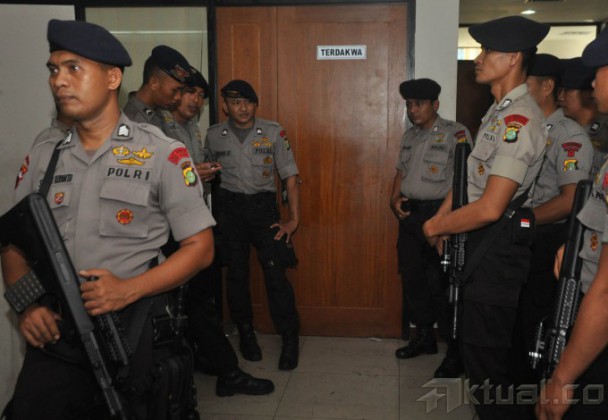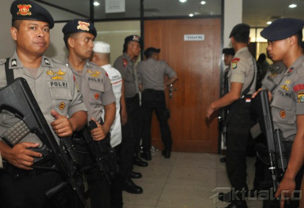 Sejumlah Petugas Polisi tengah berjaga-jaga di Pengadilan Tindak Pidana Korupsi (Tipikor), Jakarta, Rabu (24/9/2014). Pihak Kepolisian mengerahkan 130 personil untuk mengamankan sidang putusan, 130 personil berasal dari Brimob Polda Metro Jaya, Polres Jakarta Selatan, dan Polsek Setiabudi. Mereka ditempatkan di sekitar Gedung Pengadilan Tipikor Jakarta. AKTUAL/JUNAIDI MAHBUB