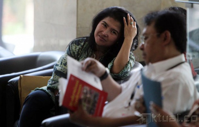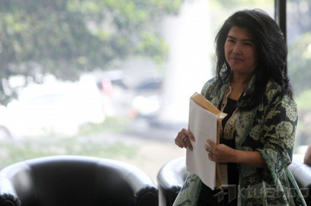 Caretaker GM Salesand Marketing Mentro TV, Aldasni saat memenuhi panggilan Komisi Pemberantasan Korupsi di Gedung KPK Jakarta,Jumat (28/3/2014). KPK terus mengumpulkan keterangan dari pihak-pihak yang diduga tahu soal kasus penerimaan hadiah atau janji terkait proyek Hambalang dengan tersangka Anas Urbaningrum, termasuk Aldasni. Aktual/Tino Oktaviano