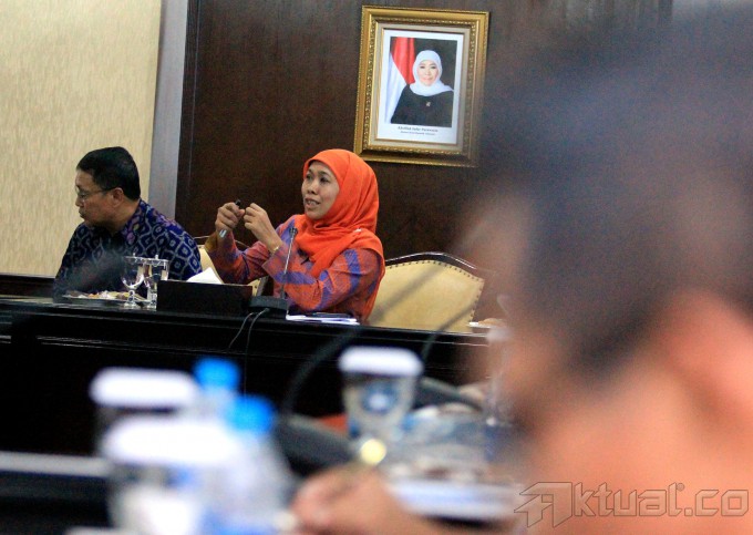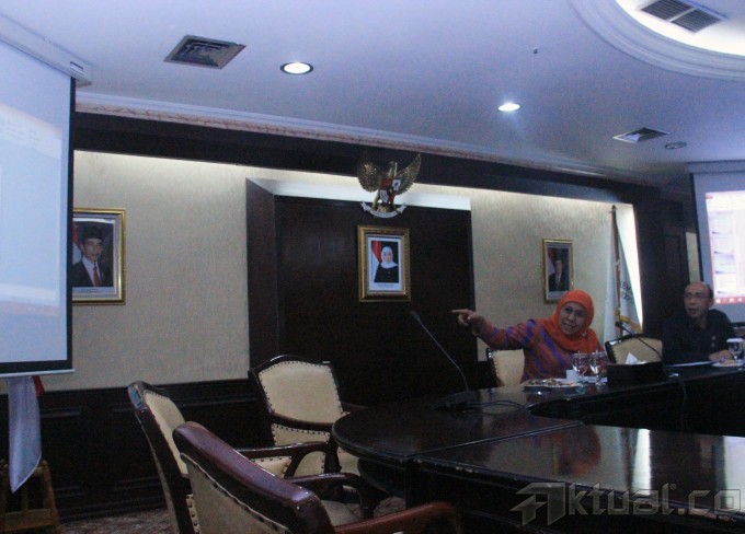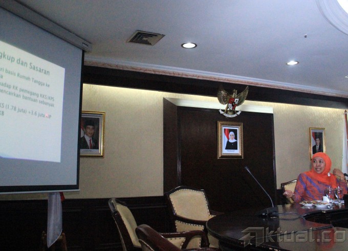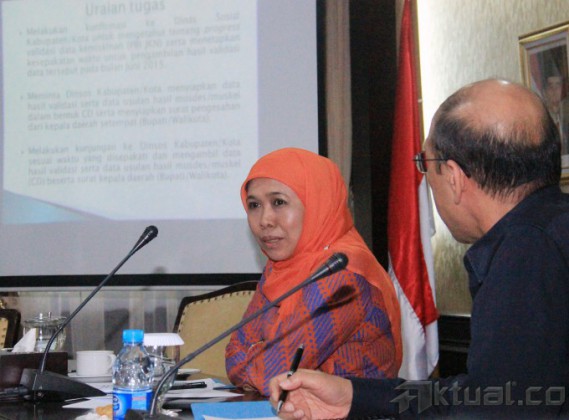 Menteri Sosial Khofifah Indar Parawansa saat rapat tim verifikasi dan validasi data di kantor Kemensos, Jakarta, Senin (25/5/2015). Program Kartu Perlindungan Sosial (KPS) dan Kartu Keluarga Sejahtera (KKS) membuntuhkan pasokan data yang akurat. Karena itulah, Mensos mencanangkan perlunya verifikasi dan validasi data pemegang KPS yang membutuhkan peran aktif pemerintah daerah provinsi, kabupaten/kota, serta keterlibatan masyarakat. AKTUAL/MUNZIR