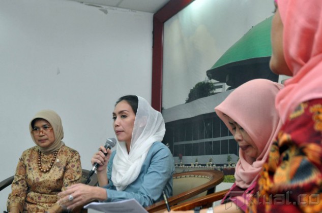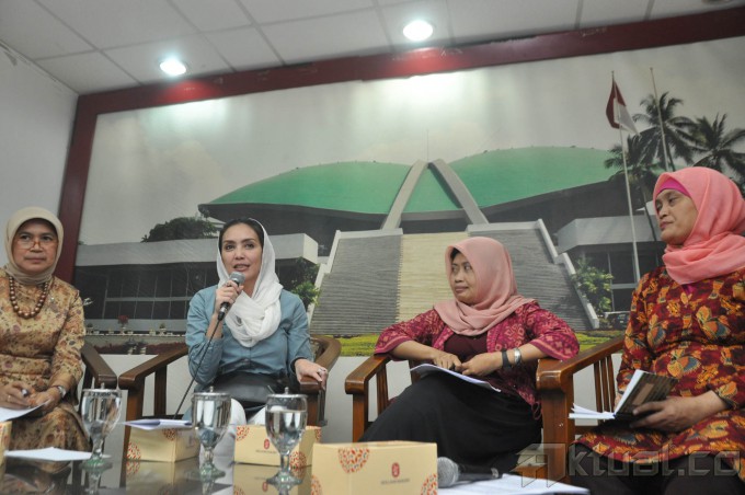 Dari kiri ke kanan, Anggota Komite II DPD Anna Latuconsina, Anggota DPR Fraksi PDIP Rieke Diah Pitaloka dan Komisioner Komnas Perempuan Masruchah saat menjadi pembicara diskusi Indonesia Darurat Kekerasan Seksual dan Dukung RUU Penghapusan Kekerasan Seksual, di Press Room DPR RI, Jakarta, Jumat (13/2/2015). Mereka mendesak DPR dan DPD untuk mengakomodir RUU Kekerasan Terhadap Perempuan masuk dalam Program Legislasi Nasional (Prolegnas) setelah tidak dimasukkannya RUU tersebut ke dalam Prolegnas 2015 maupun 2019. AKTUAL/JUNAIDI MAHBUB