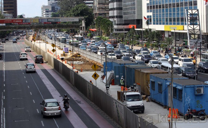Sejumlah pekerja tengah mengerjakan proyek pembangunan mass rapid transit (MRT) di Jalan MH Thamrin, Jakarta Pusat, Rabu (2/4/2014). Terkait rencana rekayasa lalu lintas yang akan dilakukan di sepanjang ruas jalan yang dilewati pembangunan proyek sarana transportasi massal atau Mass Rapid Transit (MRT) dari Jalan MH Thamrin hingga Jalan Fatmawati dan Lebak Bulus, PT MRT Jakarta menemui Direktorat Lalu Lintas Polda Metro Jaya. Aktual/Tino Oktaviano