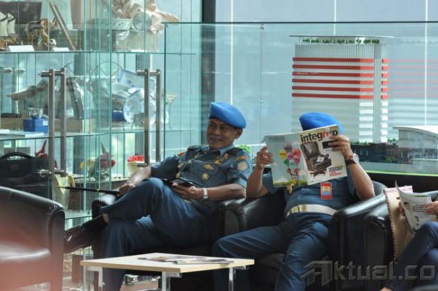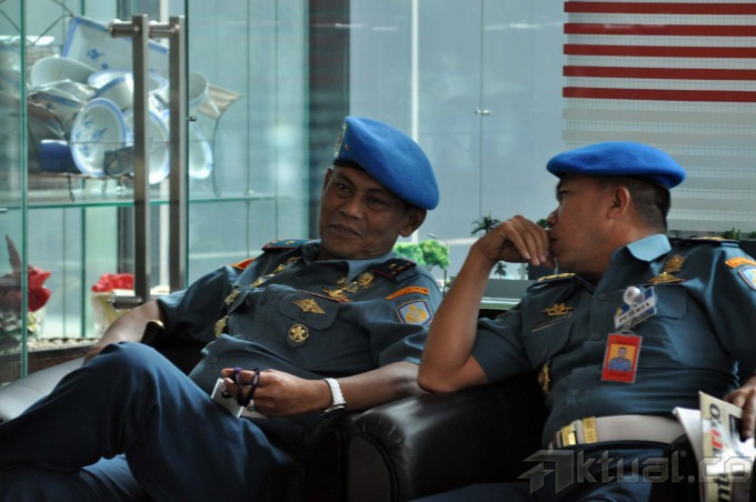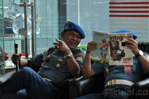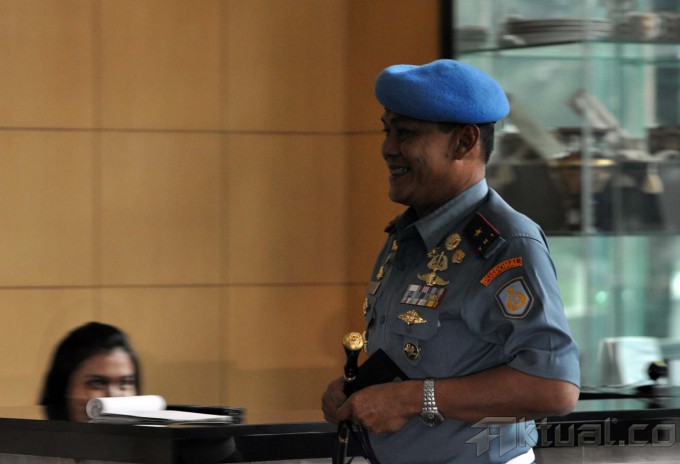 Danpuspomal Brigjen TNI (Mar) Gunung Heru (kiri), duduk di Loby setibanya di Gedung Komisi Pemberantasan Korupsi (KPK), Jl HR Rasuna Said, Jakarta Selatan, Selasa (2/12/2014), Belum jelas maksud kedatangan ketiganya apakah terkait penangkapan tersebut atau tidak. AKTUAL/JUNAIDI MAHBUB