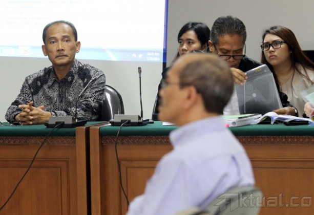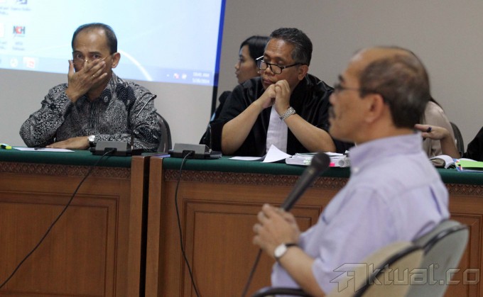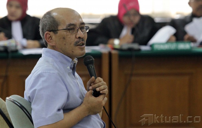 Ekonom Faisal Basri duduk saat menjadi saksi meringankan di sidang kasus pemberian Fasilitas Pendanaan Jangka Pendek dan Penetapan Bank Century sebagai bank gagal berdampak sistemik, mantan Deputi V Bank Indonesia, Budi Mulya, di pengadilan Tindak Pidana Korupsi (Tipikor), Jakarta, Senin (26/5/2014). Faisal menyampaikan pandangannya terkait FPJP dan penetapan Bank Century sebagai bank gagal berdampak sistemik. Kesaksiannya dianggap dapat meringankan posisi Budi Mulya. Aktual/Tino Oktaviano