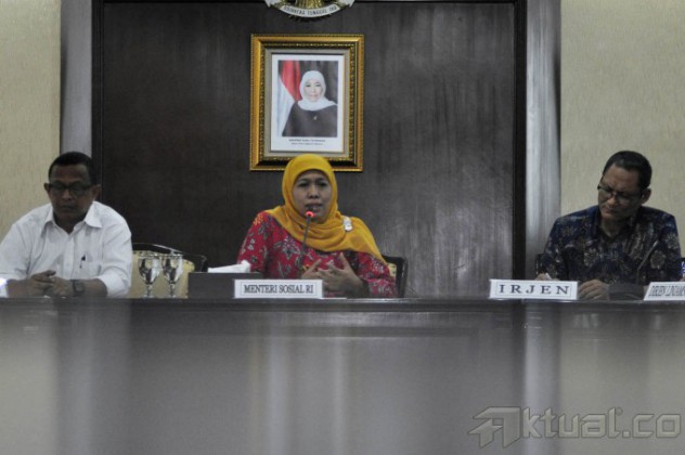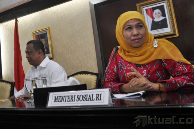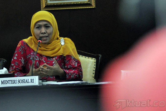 Menteri Sosial Khofifah Indar Parawansyah, memberikan keterangan kepada awak media di Ruang Rapat Kementerian Sosial, Jalan Salemba, Jakarta, Jumat (30/1/2015). Selain memberikan keterangan mengenai target kerja Kementerian, Mensos juga menyampaikan persiapan launching pendaftaran online rehabilitasi sosial 100 ribu pengguna narkoba. AKTUAL/JUNAIDI MAHBUB