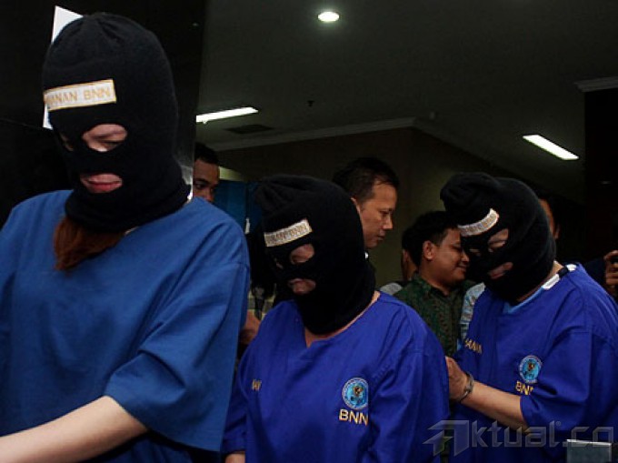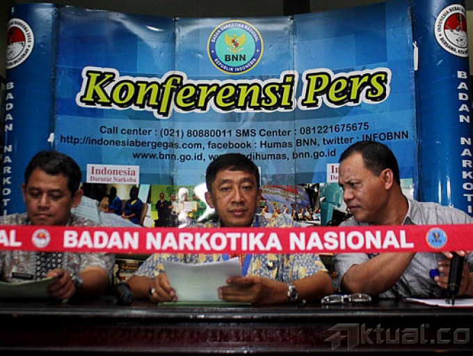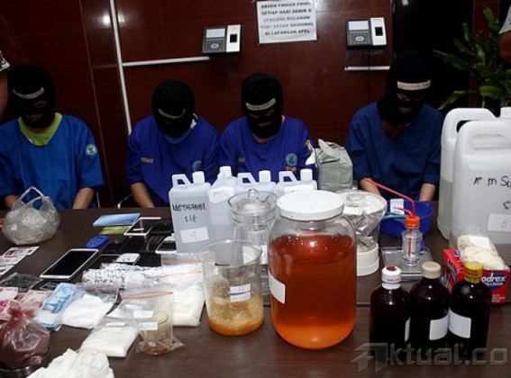 Badan Narkotika Nasional (BNN) merilis tersangka produsen industri narkotika jenis sabu rumahan di kantor pusat BNN Jakarta, Selasa (28/4/2015). Dalam kurun waktu satu minggu, petugas BNN berhasil mengungkap industri sabu rumahan tersebut dari tiga lokasi yang berbeda yakni, Medan, Aceh dan Jakarta beserta barang bukti bahan dan alat produksi sabu tersebut. AKTUAL/MUNZIR