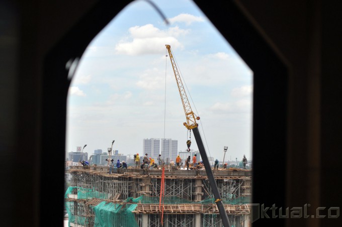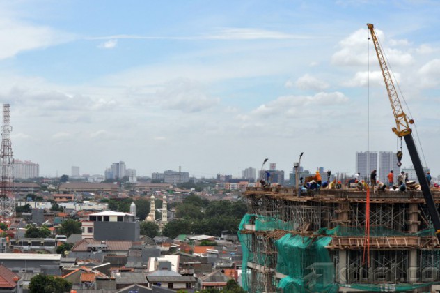 Pekerja melakukan pengecoran proyek perkantoran Jalan Kenari, Salemba, Jakarta, Jumat (24/4/2015). Pasar properti Indonesia secara keseluruhan mengalami perlambatan di tahun 2015. Hal ini diakibatkan oleh depresiasi rupiah, stabilisasi ekonomi, hingga ketatnya persaingan antara pelaku properti.AKTUAL/JUNAIDI MAHBUB