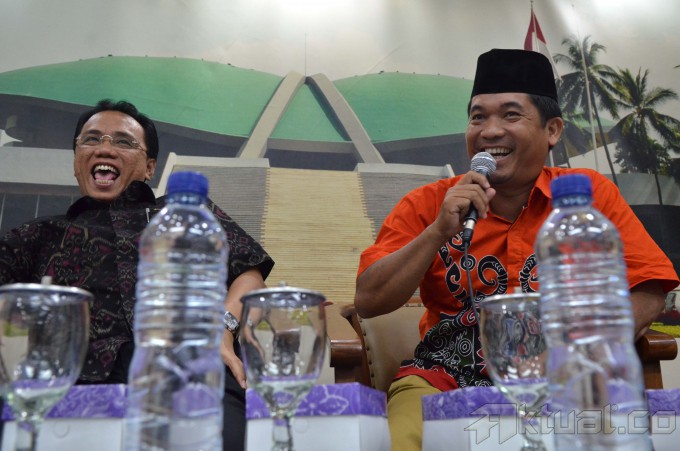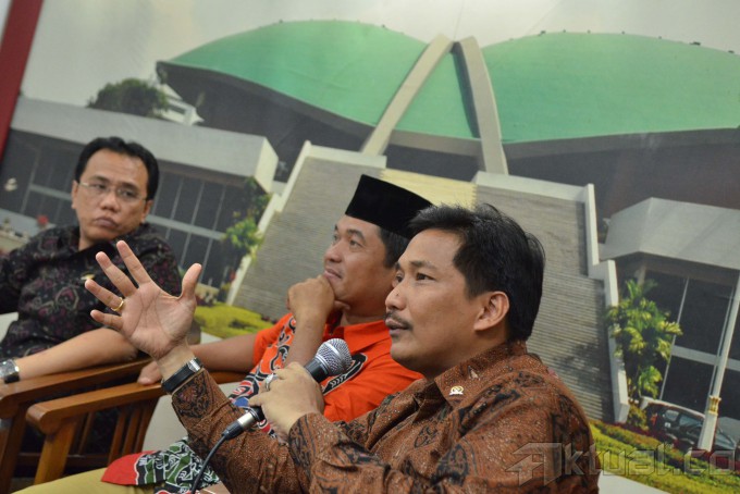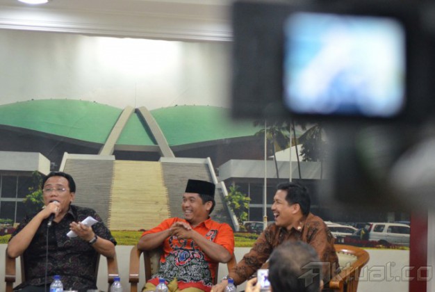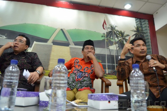 Anggota DPR Fraksi PPP Fadly Nursal (kiri) bersama Direktur Eksekutif Lingkar Madani Indonesia (LIMA) Ray Rangkuti (tengah) dan Anggota Fraksi Golkar Bowo Sidiq Pangarso (kanan) saat mengikuti Diskusi Dialektika Demokrasi yang bertema ” Mengukur Efektifitas Kinerja Dewan di Tengah Dualisme Fraksi/Parpol” di Pressrom Komplek Parlemen Senayan, Jakarta, Kamis (26/3/2015). AKTUAL/JUNAIDI MAHBUB