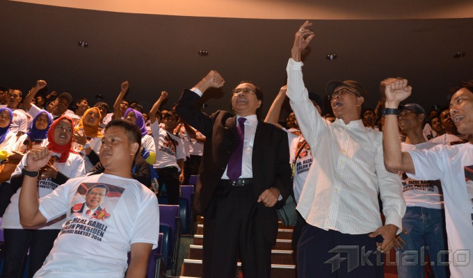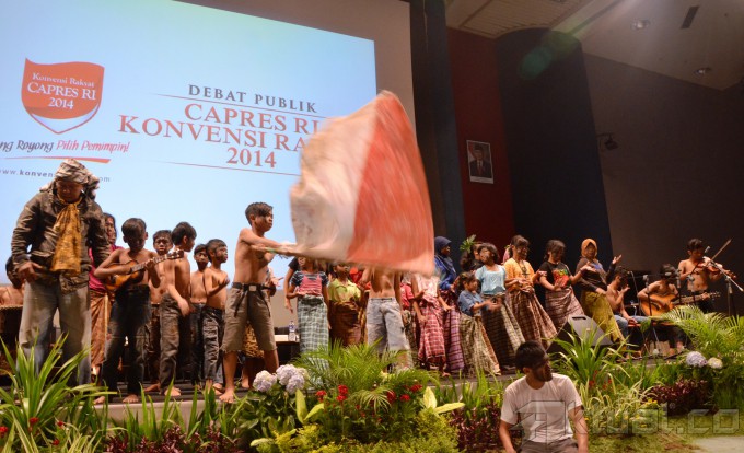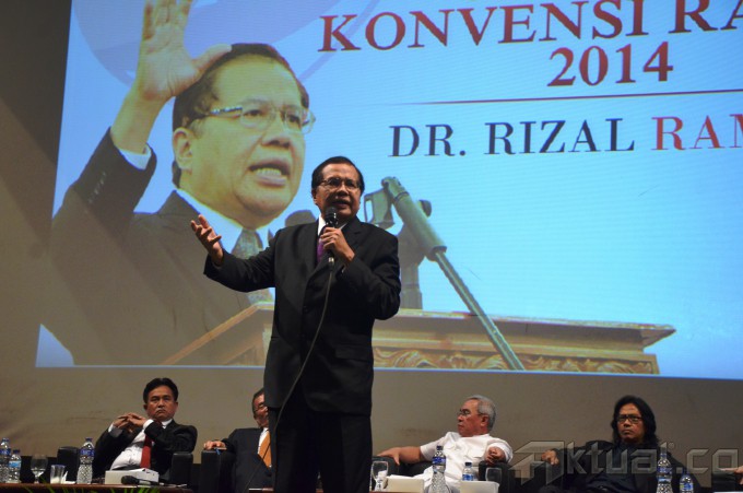 Konvensi Rakyat Capres 2014 Rizal Ramli (tengah) bersama Yusril Izhamahendra (kiri), Sofjan Saury Siregar (kedua kiri) dan Isran Noor (dua darikanan) dan Tony Ardi memberikan pandangannya saat debat capres Konvensi Rakyat di Bandung, Minggu (2/3/2014). SIAPA pun presiden terpilih hasil Pemilu 2014 akan menghadapi tantangan sangat berat. Oleh karenanya, presiden mendatang haruslah orang yang cerdas dan berani melakukan terobosan-terobosan dalam menyelesaikan permasalahan ekonomi yang dihadapi bangsa Indonesia. Aktual/Rumgali