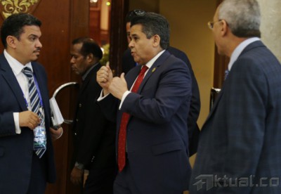 Menlu Libya Mohammed Al Dairi bersiap mengikuti sidang pleno kedua dalam Pertemuan Tingkat Menteri Asia Afrika di Jakarta Convention Center, Senin (20/4/2015). Al Dairi menyatakan dengan tegas bahwa pihaknya butuh dukungan negara-negara Asia dan Afrika untuk memerangi ISIS. AKTUAL/TINO OKTAVIANO