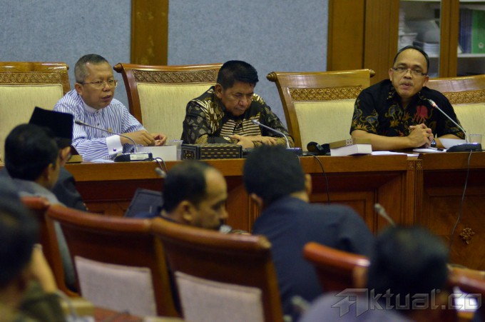 Ketua Badan Legislasi (Baleg) Sareh Wiyono (kanan) dan Anggota Baleg Arsul Sani, menerima sekitar 20 hakim muda yang tergabung dalam Forum Diskusi Hakim Indonesia (FDHI) menyambangi gedung DPR di Komplek Parlemen, Senayan, Jakarta, Senin (27/4/2015). Mereka diterima dan diminta masukan soal Rancangan Undang-Undang (RUU) Jabatan Hakim. AKTUAL/JUNAIDI MAHBUB