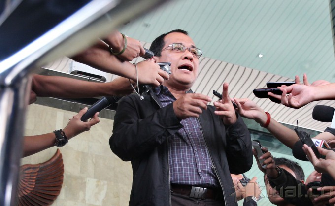 Politisi Partai Nasdem Akbar Faisal memberi keterangan kepada wartawan di gedung KPK, Jakarta, Senin (3/3/2014). Akbar Faisal gagal bertemu mantan Ketua Umum Partai Demokrat Anas Urbaningrum di ruang tahanan KPK untuk mengkonfirmasi soal skandal Bank Century. Aktual/Tino Oktaviano