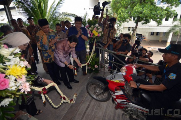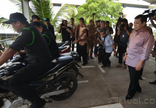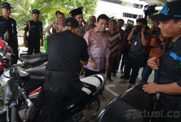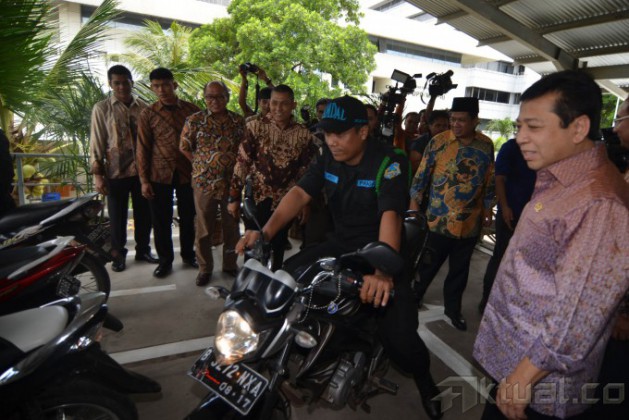 Ketua DPR Setya Novanto meresmikan parkiran sepeda motor di lingkungan Komplek Parlemen, Jakarta, Jum’at (6/2/2015). Parkir sepeda motor merupakan salah satu sarana pendukung di komplek DPR/MPR/DPD yang sangat dibutuhkan dan dapat digunakan bagi karyawan dan wartawan DPR. AKTUAL/JUNAIDI MAHBUB