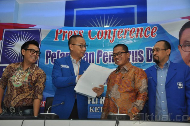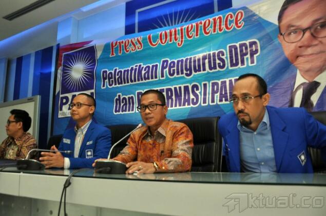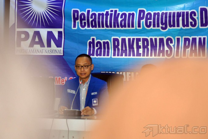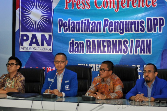 Dari kiri ke kanan, Ketua DPP Partai Amanat Nasional (PAN) Eko Hendro Purnomo, Sekjen PAN Edy Soeparno, Ketua Panitia Rakernas PAN Yandri Soesanto, Ketua DPP PAN Andi Taufan Tiro berbincang-bincang saat usai memberikan keterangan kepada sejumlah awak media di Komplek Parlemen, Senayan, Jakarta, Senin (4/5/2015). PAN akan menggelar pelantikan dan rapat kerja nasional pada 6-7 Mei nanti. Dalam pelantikan tersebut, dijadwalkan akan dihadiri oleh Presiden Joko Widodo dan Wakil Presiden Jusuf Kalla. Bahkan, dalam susunan acara yang dibuat PAN, Presiden Jokowi diberi waktu untuk menyampaikan pidato. AKTUAL/JUNAIDI MAHBUB