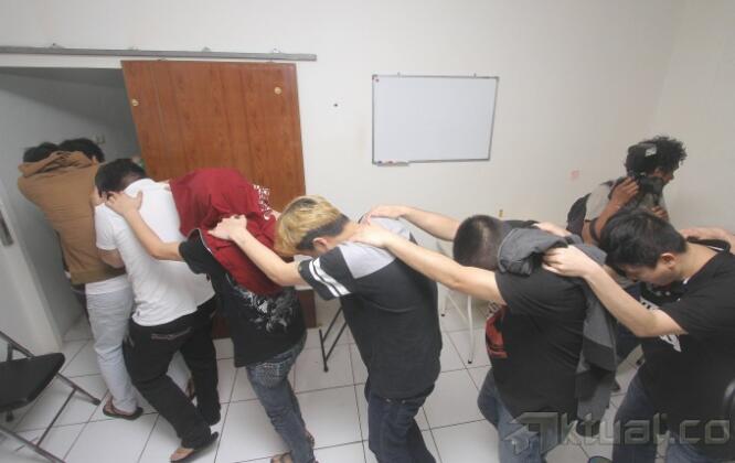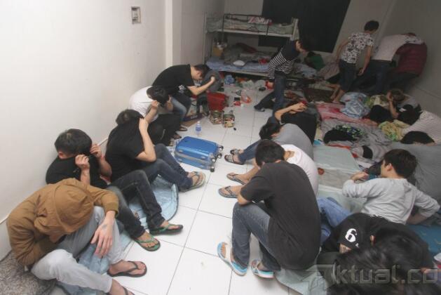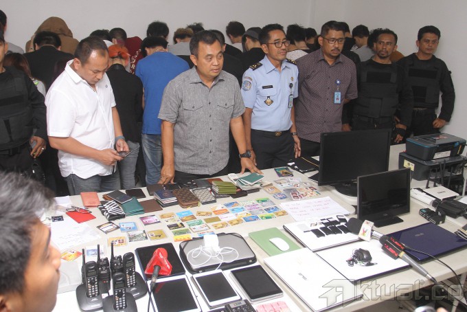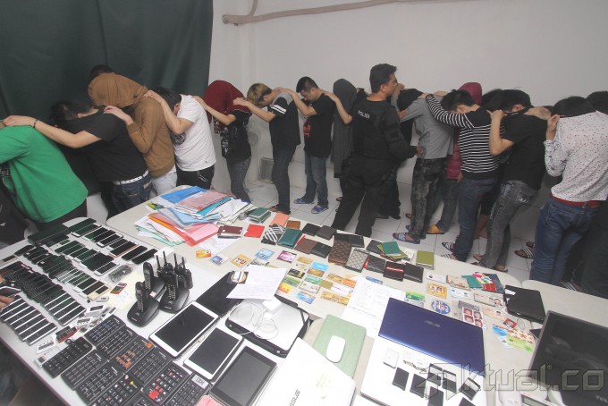 Petugas Subdit Kejahatan dan Kekerasan (Jatanras) Ditreskrimum Polda Metro Jaya mengamankan 30 warga negara asing (WNA) di sebuah ruko di Elang Laut Boulevard, Pantai Indah Kapuk (PIK), Penjaringan, Jakarta Utara, Selasa (12/5/2015). Puluhan WNA asal Tiongkok tersebut diduga terlibat aksi cyber crime terhadap para pejabat dan warga Tionghoa di Indonesia. AKTUAL/TINO OKTAVIANO